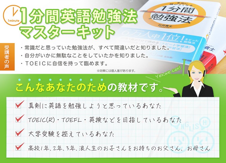 1分間英語勉強法の英語マスターキット!TOEICにもおすすめ人気の勉強法とは?